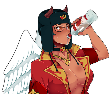 She's half succubus and half angel, you will see her and art of her around a lot.